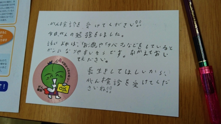 『がんは怖い!怖い?』 徳島県立三好病院 寺嶋吉保氏 大切な方へがん検診を呼びかけるメッセージカード作成 |