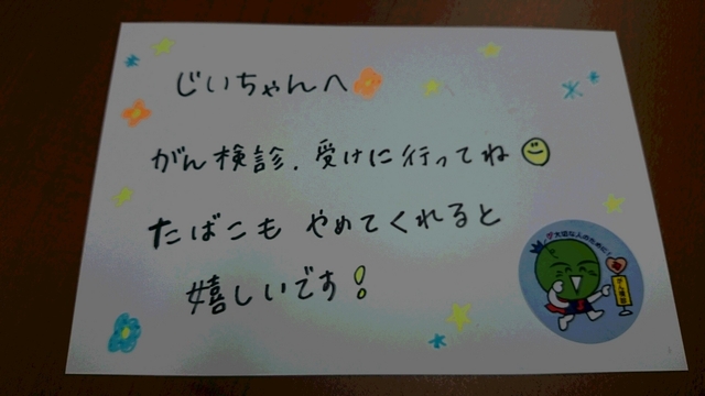 『たばことがん』 徳島県立三好病院 住友正幸氏 大切な方へがん検診を呼びかけるメッセージカード作成 |